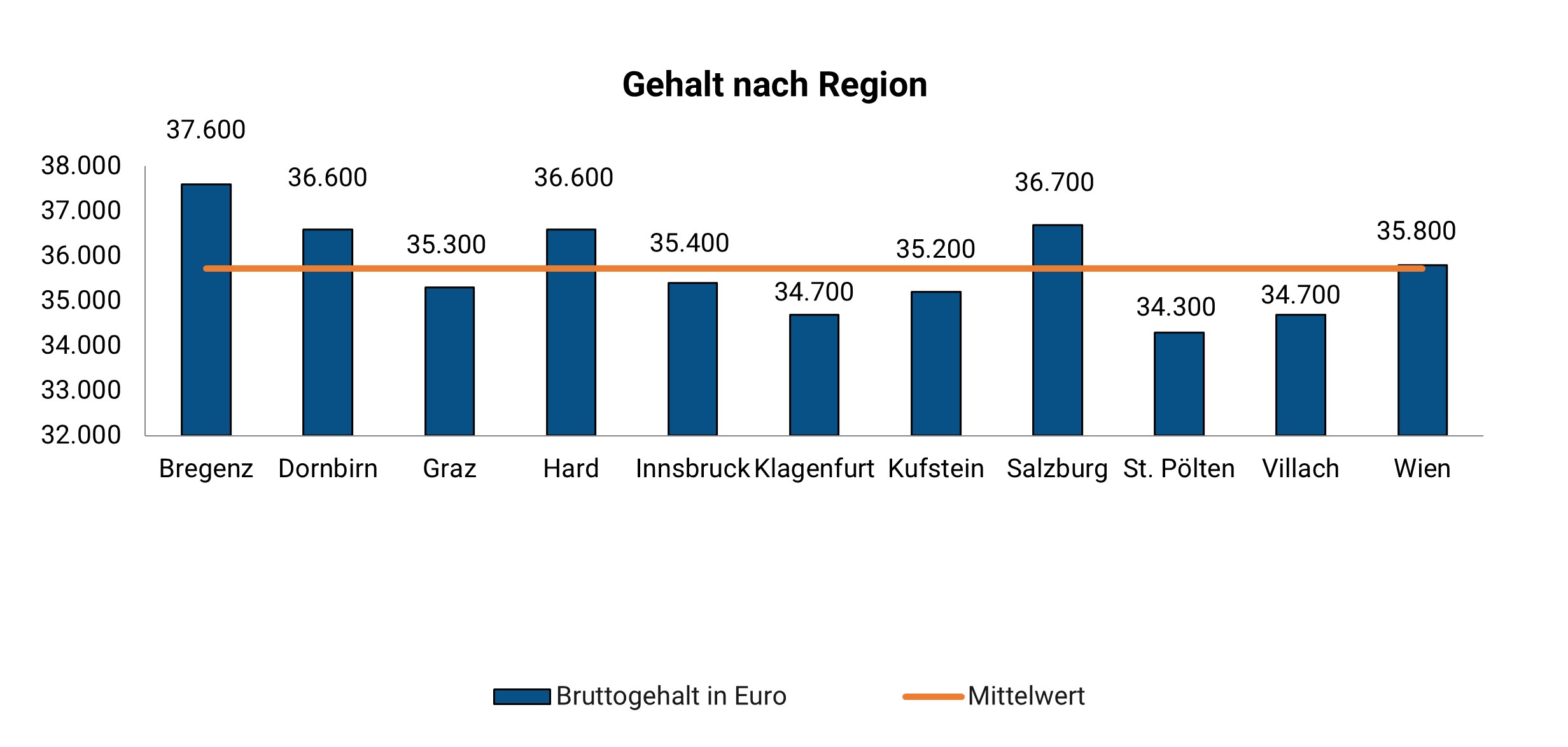 Das Gehalt von Labortechnikern variiert auch je nachdem, wo die Fachkräfte arbeiten. Während sie in Bregenz mit 37.600 Euro im jährlichen Mittel am meisten verdienen, müssen sie in Sankt Pölten mit 34.300 Euro pro Jahr die größten Gehaltseinbußen hinnehmen.